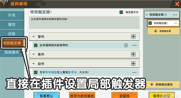 当然,冒险家们也可以制作多种类型的插件来制作插件包,例如武器、生物、方块等等,你也可以把自己制作的微缩模型应用在插件上,除此之外,新版本还增加了局部触发器功能,可以直接将触发器设置在插件上并且可以直接打包哦~