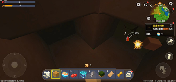 3、进入游戏之后,右上角有任务提示,根据任务提示收集需要的材料;