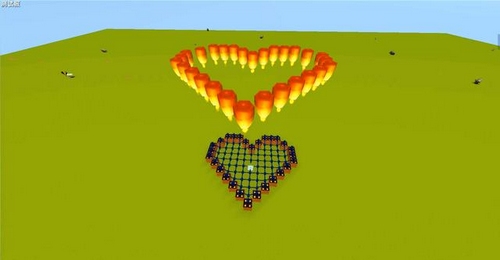 第一步:在地面上用发射装置摆一个心形,这里要注意,两边要对称,做完之后显得比较好看
