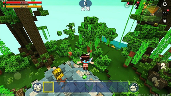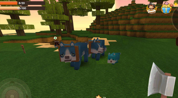 其次就是这一类游戏最大的主要内容:生存!在游戏的一开始你需要先收集一些基本的资源,制造一些简单的工具。最首要的就是砍树。方法就是找到一棵树,将屏幕的中心对准树干长按屏幕,然后触碰掉落的木块,就会获得一些木材。再将这些木材制作成基本的工具。比如可以用来防身的木剑、可以加快砍树的木斧、可以加快挖矿的木镐等等,都可以让你在前期的资源收集中提高非常多的效率,领先其他玩家。在收集足够的材料时,你也要记得用木剑猎取一些小动物,可以获得皮毛和肉,前者以后可以做衣服,而生肉则是前期重要的食物来源。也要用多余的木材建造一个工作台,可以制作更复杂的一些道具。
