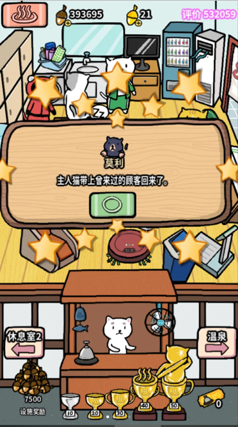 充分升级温泉的评价值,派主人猫到村子里邀请动物,若主人猫邀请的动物曾来过温泉,则该动物将会升级,其中沐浴用品获得次数超过10次,该动物会获得常客印章,常客动物每10次获得沐浴用品,常客等级将会提升。
