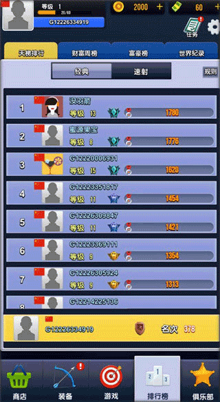 5、参加各种比赛获取积分,游戏大厅有一个排行榜可以看到排名。