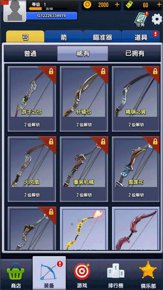 7、也可以同过提升等级解锁更多的弓箭。