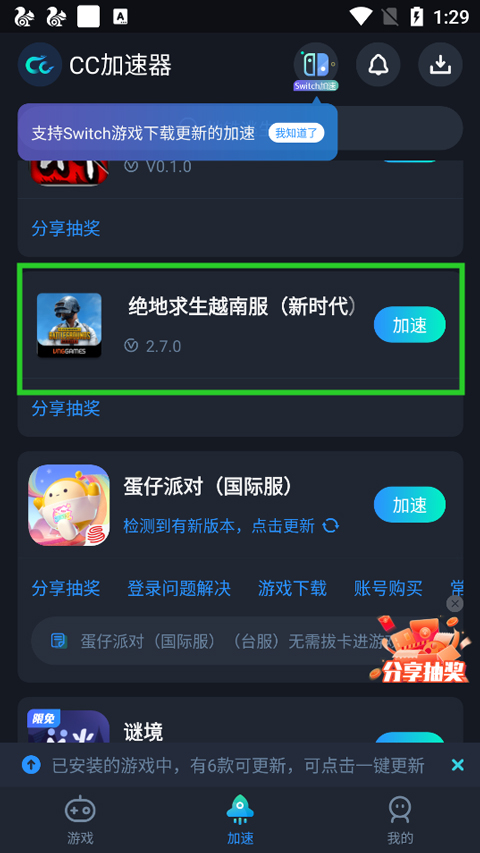 玩家在安装后页面会显示“CC加速器”,用户就选择使用这款加速器进行登录,当然别的加速器也可以