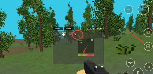 1、首先既然是要砍树,那就肯定得换把斧子,点击右侧包裹按钮找到斧头,再点它选择绿色的use(使用)按钮即可。