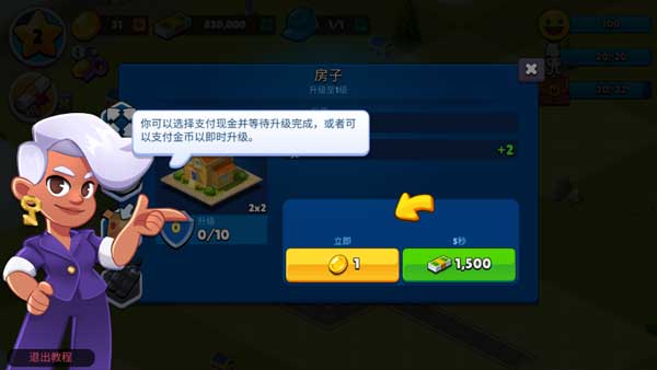 7、房子升级非常简单,玩家只需要点击想要升级的房子,然后用支付现金的方式等待升级完成。