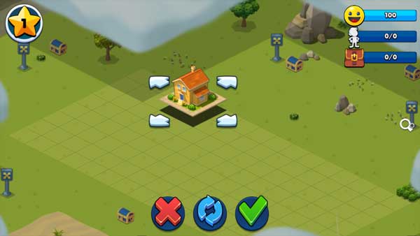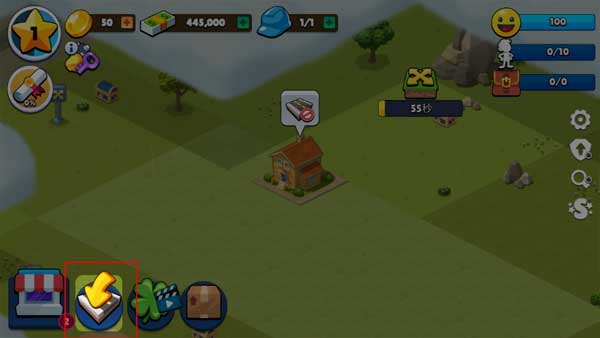 3、下面就是建造一个房子,点击左下角的门店图标按钮,找到一个人的图案并点击它。用钞票购买房子并移动位置确定方向,弄好之后点击绿色的对钩即可。