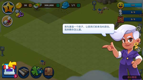 5、铺好之后,将首要目标20个居民完成之后就能解锁新的建筑了。