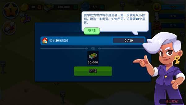 2、而想要成为世界城市建造者,第一步就是建造一条街道,吸引20名居民前来居住。