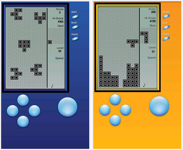 俄罗斯方块是由俄罗斯人阿列克谢·帕基特诺夫于1984年6月发明的休闲游戏,该游戏早年进入中国市场,凭借了简洁的画风和魔性的消除乐趣,成为了不少玩家最爱,在当年智能设备还不是很普及的情况下,玩家只能通过游戏机进行体验,而此次小编为你推荐的俄罗斯方块手机版,也叫Classic Brick Game,是一款运行在Android平台下的益智消除类游戏,游戏玩法与经典游戏机里的消除规则一样,并且在外观造型上,还还原了当年游戏机的模样。此外,该游戏的界面布局依旧是四个点的方位键,配合大按键的图形旋转,可以尽可能的调整,以便达到最佳消除,其上方还有start开始按钮,(music)声音开/关,(level)关卡选择以及(mode)自创关卡,了解了以上这些键位功能,下面就是玩家的表演时间,看看你是否还能挑战童年时期那傲人的成绩。
