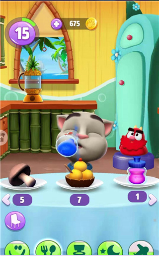 游戏的一大特色是丰富的装扮系统,玩家可以为汤姆选择多种毛色、帽子和眼镜,打造独特的外观。此外,游戏中还提供了迷你游戏和其他互动元素,增加了娱乐性。特别有趣的是“变婴儿”玩法:通过购买并使用婴儿药水,可以让汤姆变成可爱的婴儿状态,反之则可以用成人药水让它长大。
