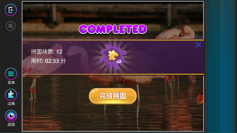 5、完成拼图会有用时记录,还可以得到碎片若干哦;