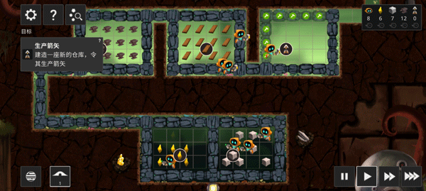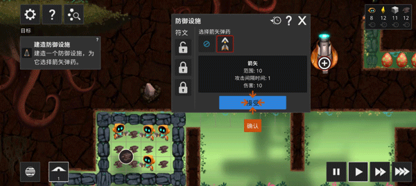 3、黑暗的敌人邪恶狠毒,他们会袭击你的基地,企图摧毁你的反应装置,抢夺你的资源。建造防御设施,装填箭矢弹药,即可击退入侵的敌人。