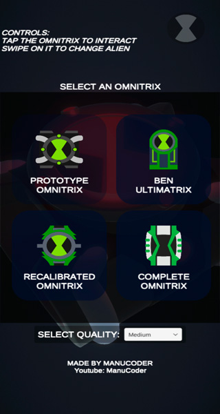少年骇客手表模拟器最新版是一款根据动漫改编创作的英雄变身模拟器手游,英文名称叫作Omnitrix Simulator,在游戏中,玩家通过该模拟器可以变身成为《少年骇客》里的强大英雄,如电蜥、积木猩、重力蟹霸、炸蚱蜢、胖胖鱼等,让你在游戏中可以体验动画里的乐趣。同时游戏内手表种类多样,玩家可以根据自己的喜好自由选择,并且每款手表都完美复刻了动画片里面的模型,各别样式的手表还提供虚拟投影的功能,让你真真切切的体会到变身的快乐。喜欢的朋友不妨下载试试看,相信一定不会让你失望的。游戏特色