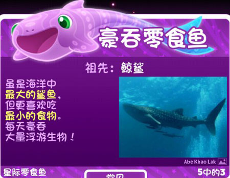 ①某次更新后鱼的大小都一样了,但鱼身的长度和弹性仍有区别,身体比较长比较柔软的鱼可以用个甩尾吃到错过的星星,鱿鱼和魔鬼鱼显示出了巨大的优势。