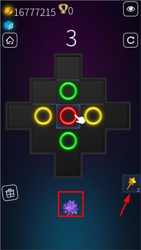3、选择模式后进入游戏,滑动屏幕上的魔力圈圈,放置到格子里;