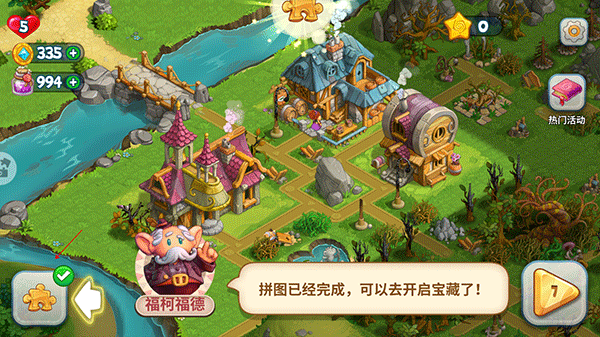 通过经典消除玩法获得拼图碎片,修复被摧毁的大陆,同时还可以收集物品合成心仪的建筑
