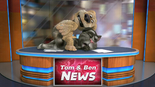 汤姆猫新闻联播游戏是一款适合儿童的休闲益智的手游,其官方正式名称是:会说话的新闻(Talking Tom & Ben News),游戏由于讲述了会说话的汤姆和本两只大猫咪成了著名的电视新闻主播一同登台亮相,所以也称之为会说话的汤姆和本播报新闻游戏。在游戏中玩家们对它们说话,它们会轮流重复您说的话,而且还可以为它们设计和记录有趣的对话。