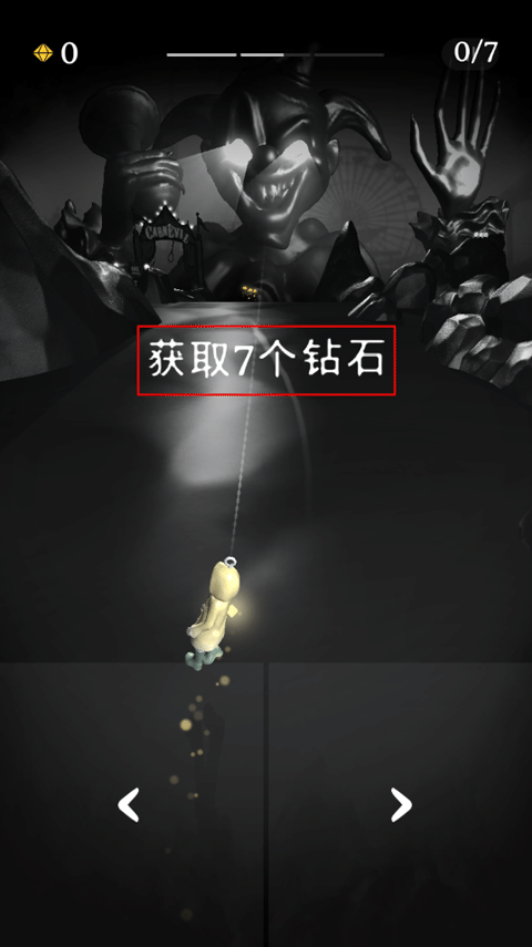 3、第一个关卡的目标就是要获取7个钻石,开始通过摇摆来触碰发光的钻石了。