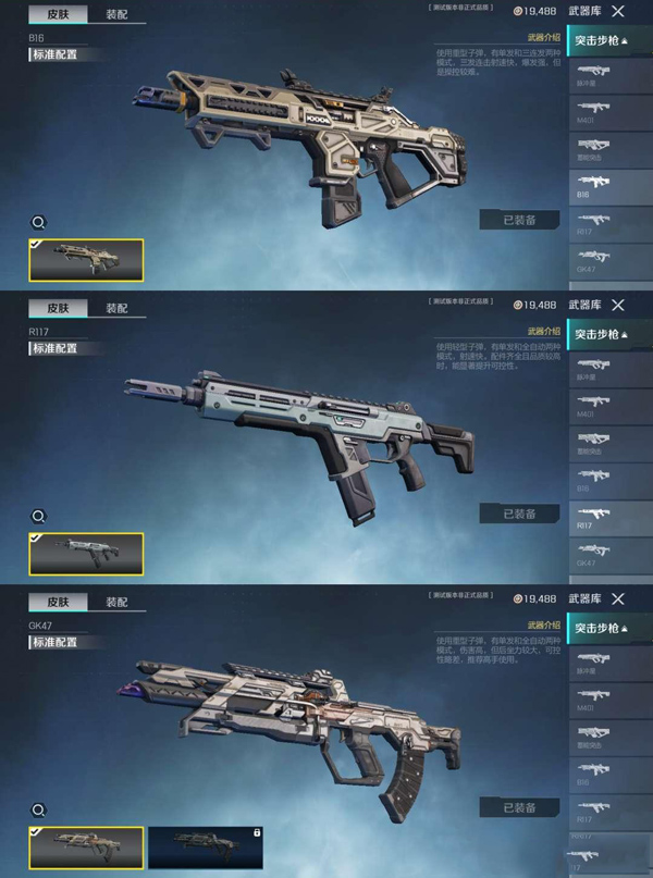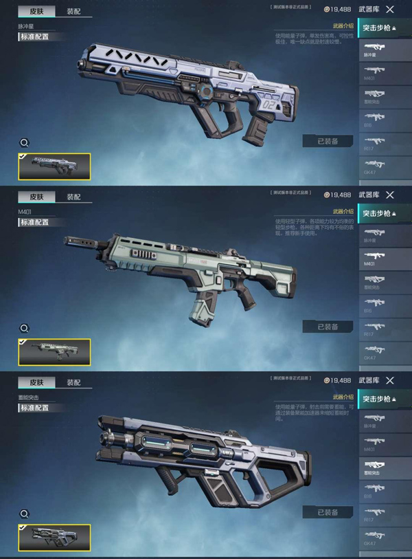 除此之外,游戏内还设计了超多极具未来科技感的枪械武器,目前分为七大类:突击步枪、冲锋枪、轻机枪、霰弹枪、狙击枪、手枪、射手步枪,每种武器攻击定位不同,威力也不一样,玩家可根据自己的喜好,以及地图特性来选择,以此更好地消灭对手,取得比赛胜利。