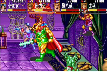 在西游释厄伝SUPER中有5个人物可以选择,分别为孙悟空、猪八戒、龙马、龙女、沙悟净,他们每个人都有着各自的特点连拍:在没有气的情况,这一招是很管用的攻击手段,下面是连拍的威力排名。