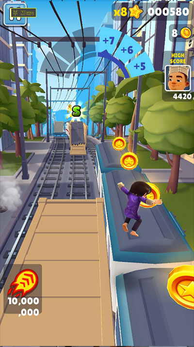 地铁跑酷变速版作为一款风靡全球的3D立体跑酷游戏,已多次登顶Appstore中国、美国等108个地区的游戏排行榜,其拥有非常精致细腻的游戏画面,里面卡通的风格让整个游戏更加的具有趣味性,玩家在这款游戏可以尽情的享受游戏带来的乐趣。