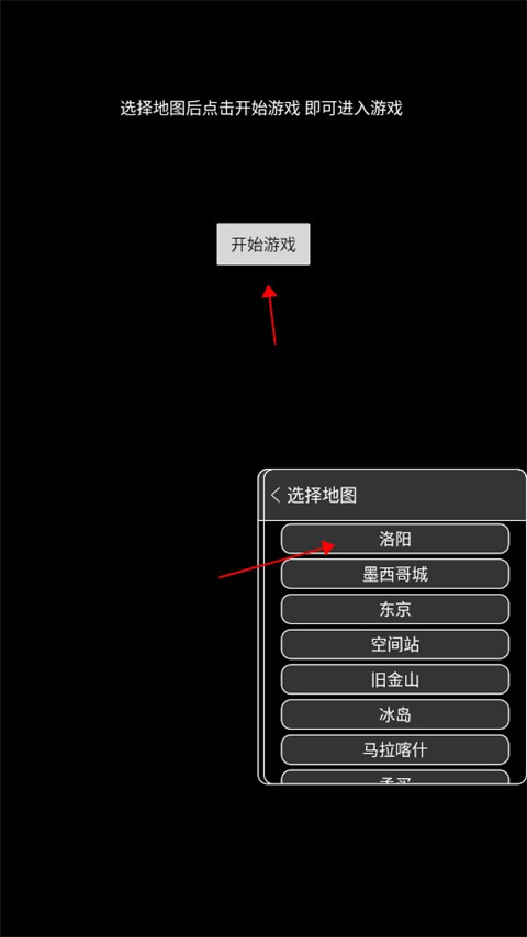 1、进入游戏之后选择一个自己喜欢的地图开始游戏。