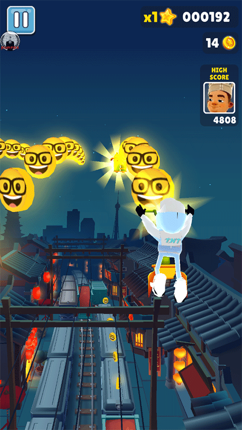 地铁跑酷TNT专属版本是一款基于地铁跑酷基础上修改而来的游戏,该版本将之前的金币替换成了高兴脸金币,人物角色也由原来的初始人物杰克变成了小黑荧光杰克,游戏中以地铁为背景,玩家将扮演星空杰克在地铁站内和桥梁上进行跑酷,在障碍物和危险环境中快速奔跑、跳跃、攀爬各种建筑,获取宝贵的金币和能力升级物品。与此同时,你所使用的角色以及整体的剧情方向,也都将以高兴的样子呈现出来,十分的具有代入感,让所有热爱地铁跑酷主题的玩家们,都能够以另一种全新的方式完美的参与其中。