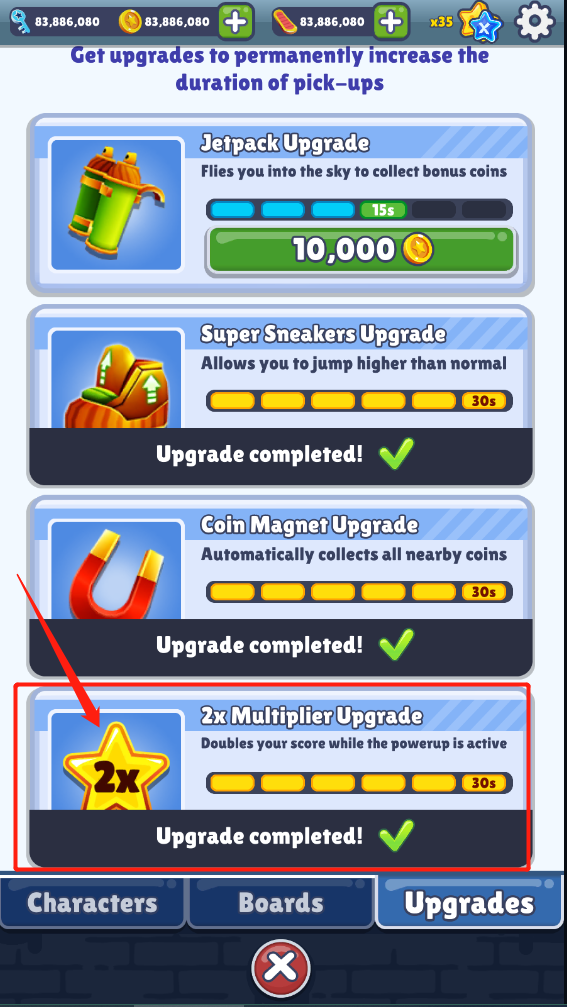 地铁跑酷地铁地狱版本怎么提升倍数?