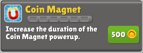 金币磁铁:看名字相信已经猜出,磁铁的作用就是吸取金币,当然只有获得更多的金币才能解锁角色,以及购买和升级道具。