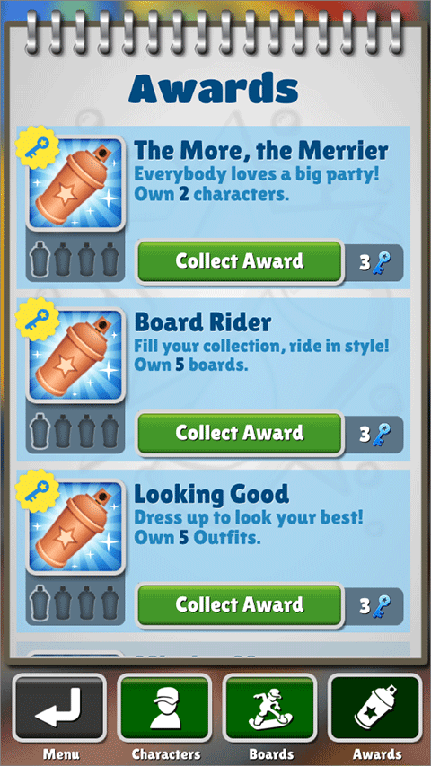 道具里面最重要的无异于是滑板了,滑板有各种各样的,大家在玩了一段时间之后,就可以根据自己的操作习惯选择一款适合自己的滑板,可以拿到更多的分数,而有的滑板是可以跟角色搭配,从而拿到多五倍的分数,在小编看来,这样的机制对于玩家是非常有利的,可以让玩家更多地享受到游戏的乐趣。