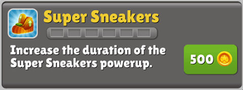 超级运动鞋:增加角色的弹跳能力,可以跳跃更高更远,在空中停滞的时间更长,不过落地时间很难掌握,使用该道具可以跳上火车,同时也可以在洞口处跳到墙上自杀。不过劝诫新手朋友不要过多使用,一时恍惚做出了错误判断就可能导致游戏结束,然而对于高玩们来说,这却是一款不折不扣的神器,凭借超级运动鞋可省去细微的费神操作,效率提升也十分明显。