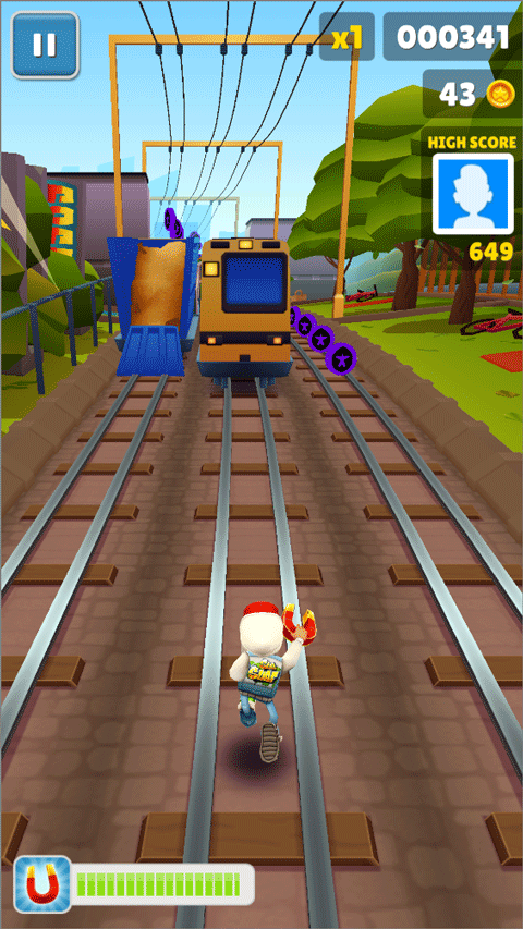 首先是对于时机的掌握能力,大家都知道,地铁跑酷的火车是会越来越快的,而你在前面的操作有可能完全跟不上后面出现的障碍,一不小心就被警察抓住了。这个是需要你进行锻炼的,玩的时间长了,也就能够懂的哪些地方会突然出现什么障碍,然后你就可以提前预知,然后躲过去,这样就可以拿到更多的分数了。