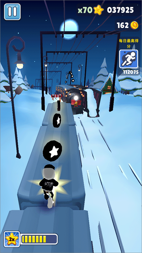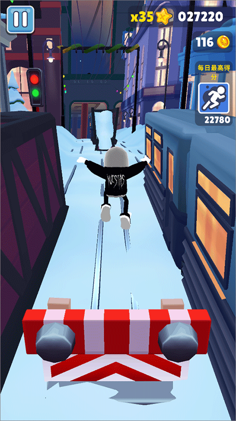 1、地铁跑酷由圣彼得堡魔改而来的版本,体验在雪地奔跑的乐趣。