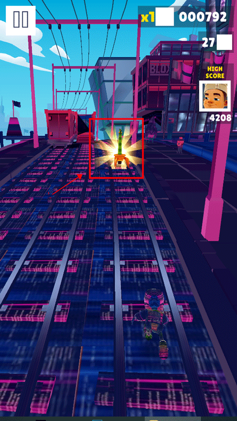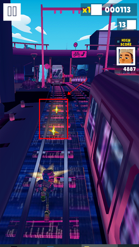 有地铁也会有隧道,中间有一根柱子,左右两边无规律会有火车奔过来,这个时候就要考验玩家的应变能力。在前期的时候过个隧道表示毫无压力,后期30W分过后经常有玩家出现手指反应不及时然后被撞死的现象。对于过隧道的技巧,眼疾手快是前提,关键是心态要放平静,这样才不会手滑。
