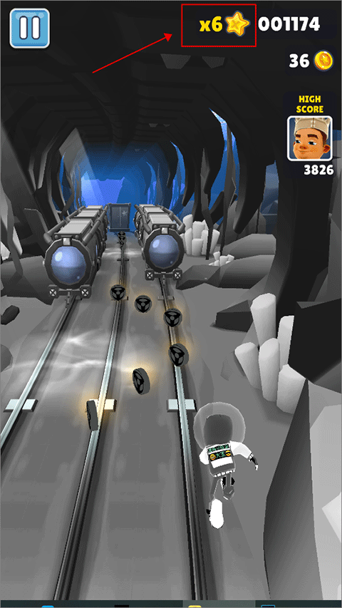 在游戏过程中我们能够看到,在游戏的右上角有一个数字,数字颜色是黄色的,其实这是酷跑的倍数,倍数越高,代表着我们跑的越快,距离越远,打个比方,我们在数字显示一的情况下,跑十秒是一百米,如果倍数是十的话,跑十秒就是一千米,这就是为什么要大家多升级数字的原因了。这也是能跑高分的关键之处。