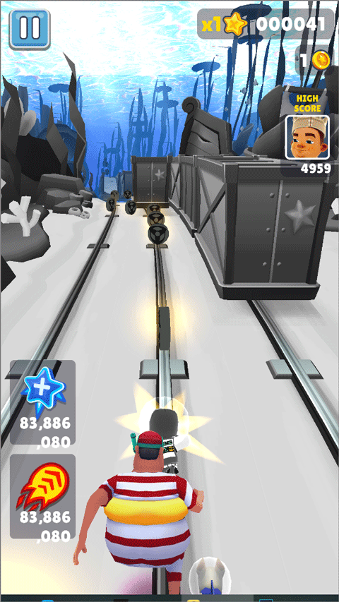 地铁跑酷国产高仿版本是一款魔改版自由跑酷游戏,游戏中玩家将会来到一个海底世界,但这里的画面由彩色变成了黑白色,且金币样式也得到了修改,甚至警察都装扮上了游泳圈和潜水镜,与经典版相比不仅更加具有创意,还能更加吸引玩家。