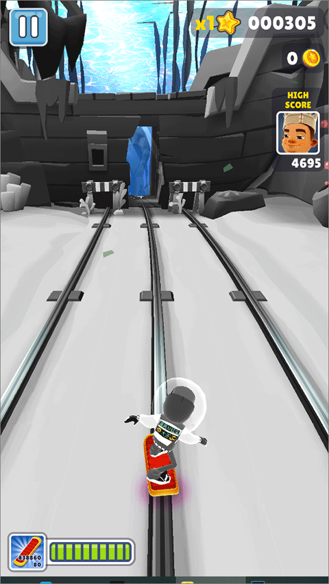 在游戏中我们会看到自己拥有滑板的数量,使用滑板跑酷的感觉也不错,滑板可以让你免除一次被抓的机会,这样一来相当于多了一条生命,在游戏过程中也可能会遇到漂浮着的道具,使用道具也会增加跑步的分数,小伙伴们可要多多注意了。