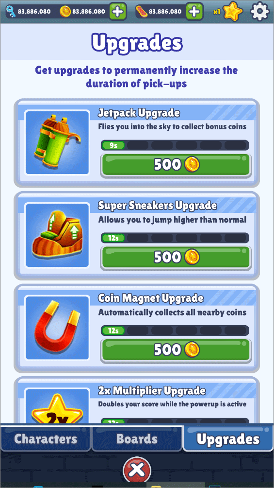 游戏中有各种道具可以使用,比如喷射器和跑鞋,这些能帮助玩家提升分数或体验不同玩法。倍数系统是关键,倍数越高,跑步距离越远,分数也更高。此外,玩家还能自定义角色形象,增加游戏趣味性。