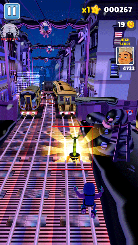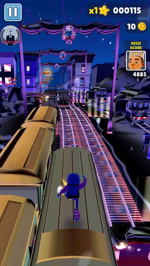 地铁跑酷杰克之城版本是一款改编版的动作跑酷类冒险游戏,这款游戏拥有全新的玩法模式,给玩家带来了独特而刺激的游戏体验,在游戏中玩家需要在轨道上进行跑酷,并及时闪避各种障碍和火车,同时还要收集各种道具和金币来提高自己的分数。而地铁跑酷杰克之城版本与原版跑酷不同的是,该游戏的地图场景、角色与金币都进行了全新设计,场景和角色主要以紫兰色为主,场景画面为下着小雪的夜晚,看起来不仅十分精美,还特别梦幻,总之很吸引人。如果你已经看厌了经典跑酷的场景,那此版本绝对值得让你尝试一下哦!