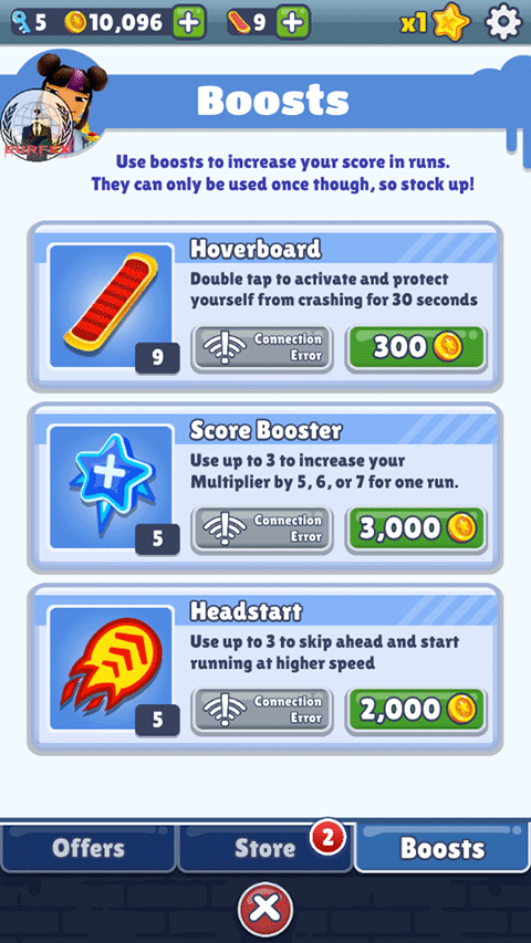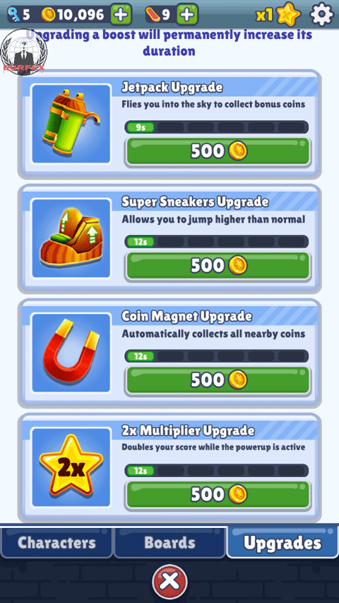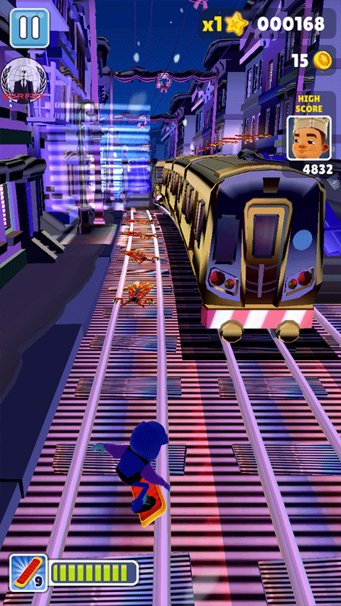 常见道具有:火箭推进背包,该道具可以让角色飞起来一段距离并沿路收集金币;超级运动鞋可提升角色正常情况的下的奔跑速度;金币磁铁可将帮助角色收集附近范围内的所有金币;双倍积分可让一定时间内获得的积分*2,以上这些道具都是有持续时间的限制,所以使用时一定要把握好时机,将收益最大化