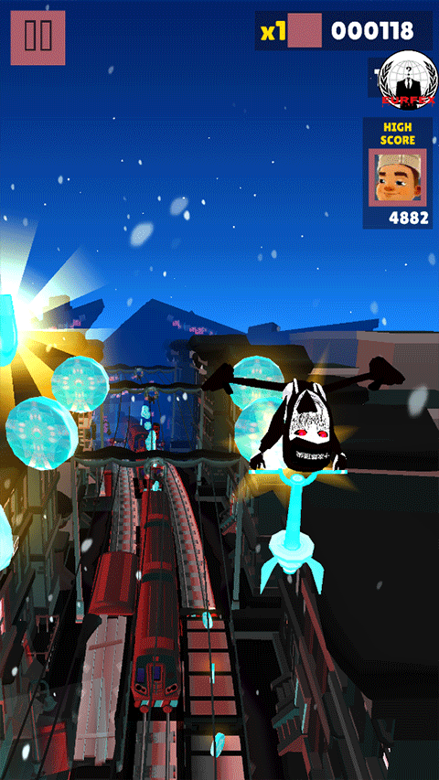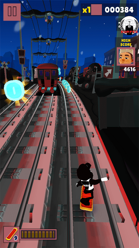 4、在跑酷游戏中算是出名的一个优秀游戏,它有跑酷游戏特有的紧张刺激,同时也因为那搞怪Q版的画风使得这个游戏玩起来也轻松愉快。这个游戏还能与别人联机,比比谁跑的分数更多,以前我也经常跟家人朋友一起比,竞争中充满了快乐,反正这也是我童年回忆之一。