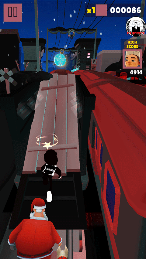 地铁跑酷暗红双旦版本是一款非常好玩的跑酷类型游戏,这款版本是由大神十次郎制作而成,其在经典地铁跑酷的模板下不仅保留了原汁原味的操作玩法,还在这基础上对地图、金币进行了修改,画面采用了暗红色设计,且还在游戏开始的界面与人物角色上定制了自己的名字,既让游戏变得独一无二,也给玩家带来了更多的新鲜感。