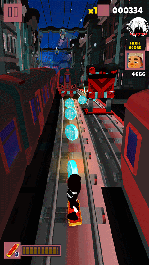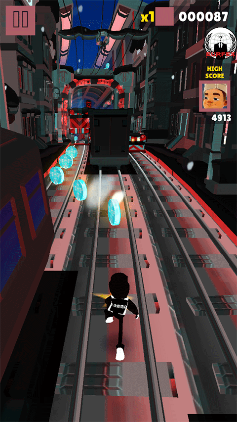 画面绚丽、色彩繁多,在操作上也是非常地顺畅、干净利落。“潮”成为了地铁跑酷的代言词,一身吊带衣加连衣裤,鸭舌一戴,卫帽一盖,你就是这地铁上最靓的仔。色彩的选择还有环境的体验,都使得地铁跑酷比其它游戏有着更丰富和良好的体验感。