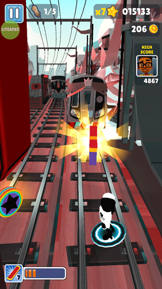 2、游戏具有不同的关卡和挑战,其中障碍、列车和警察的出现会让游戏变得更加困难和刺激。