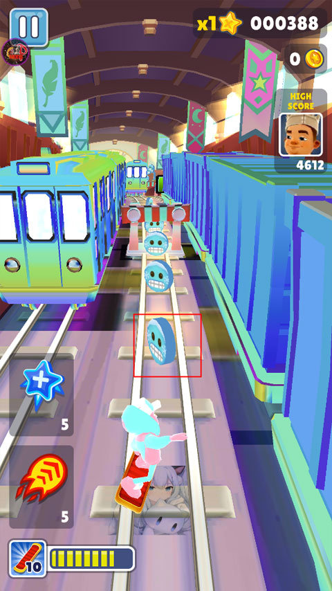 技巧2:没有跳跃鞋从轨道上火车,在有路障的情况下,掌握好跳起的落点,在路障的上方下拉,使角色落在路障上可以再次跳起,然后就可以跳上火车顶了,相信大家都遇到过有个收集物品在火车上,却拿不到而错过的尴尬,掌握了这个技巧,问题迎刃而解。