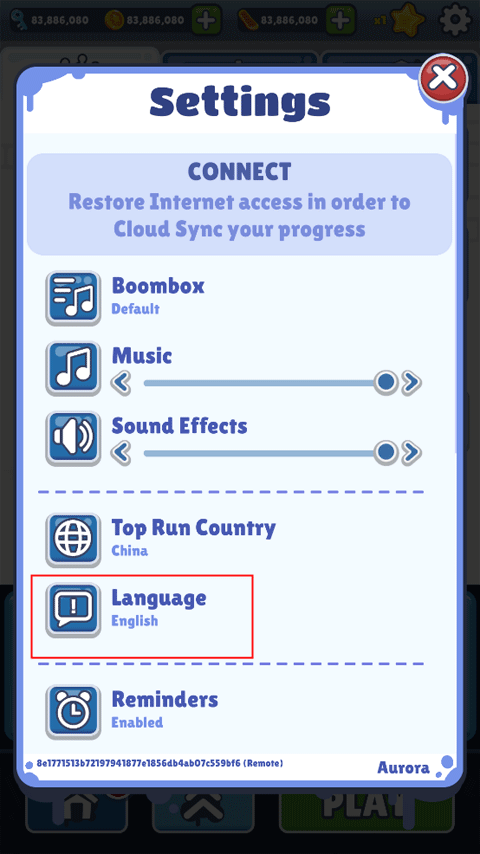 地铁跑酷海底熔岩版如何设置成中文模式