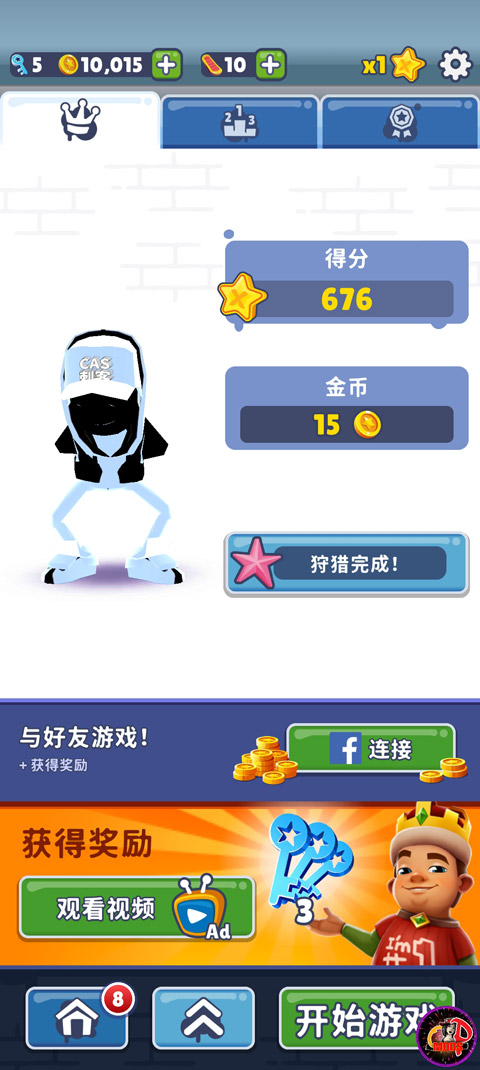 1、首先打开地铁跑酷刺客cas专属版本,进入游戏如图;
