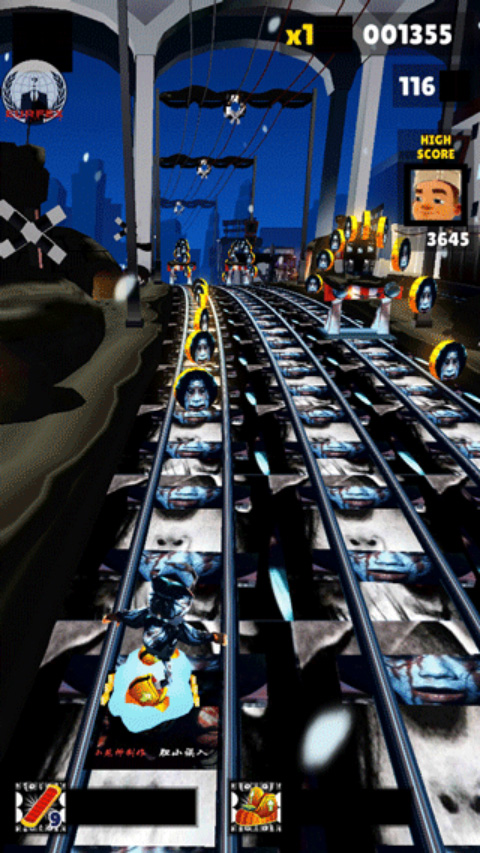 4、如果不小心被地铁撞到,或者被保安抓住,则导致游戏结束;