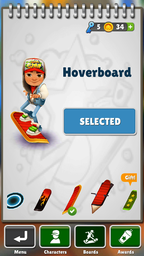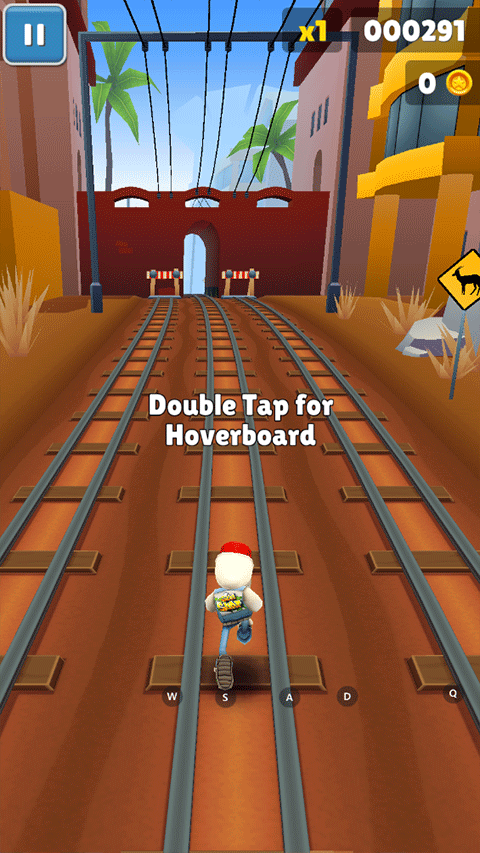 双击屏幕可启动滑板道具,如果在没有启动滑板功能的情况下,角色撞上障碍物或者火车游戏就会结束,而在滑板状态下,等于给角色买了保险,滑板会在撞到障碍物时消失,但游戏可以继续进行。滑板在消失后的几秒内出现冷却时间,当闪烁结束后可通过双击再次启动,没有次数的限制。